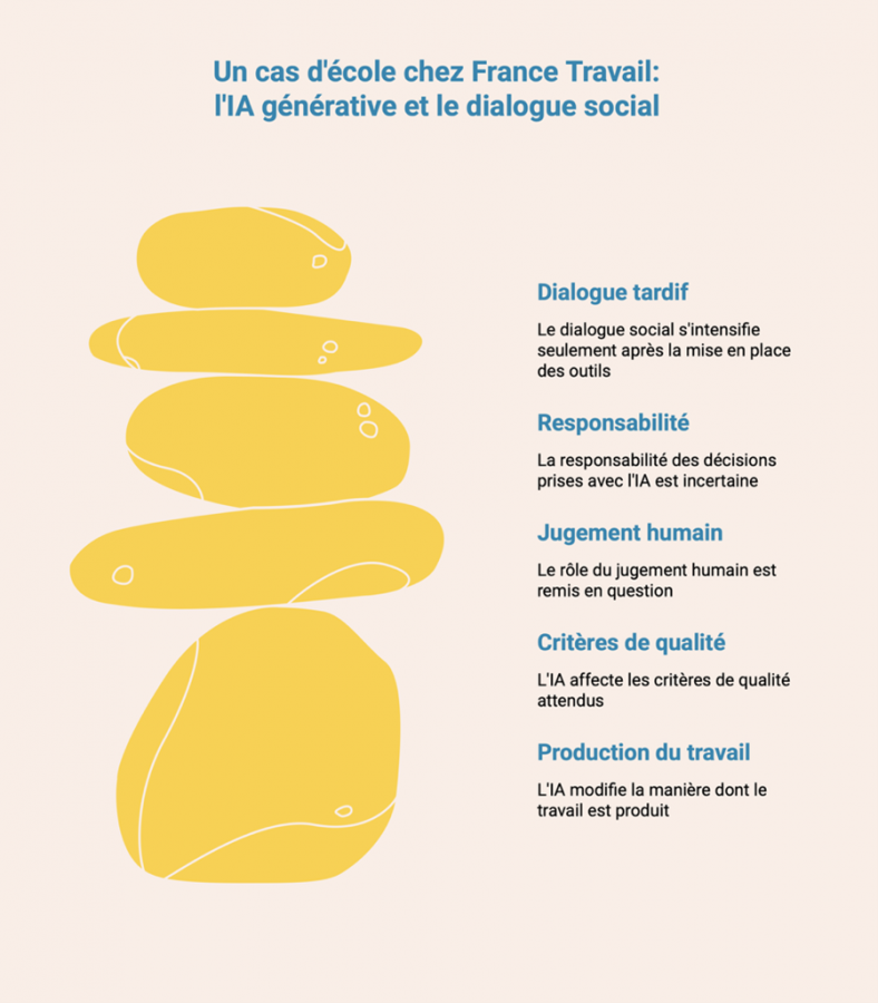 Le rapport de la Cour des comptes retrace bien l’historique du dialogue social relatif à l’IA à France Travail. Cet historique montre que le dialogue social n’a pas été absent, mais qu’il s’est installé de façon progressive et inégale.