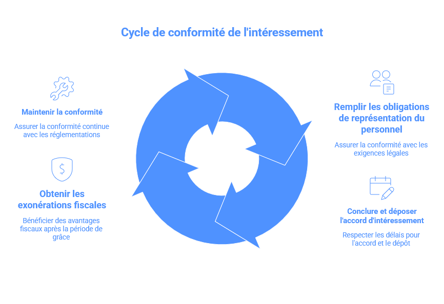 - La mise en place de l'intéressement suppose que l'entreprise remplisse ses obligations en matière de représentation du personnel. À défaut, les sommes éventuellement versées au titre de la prime d'intéressement ne peuvent bénéficier d'aucune exonération d'impôt.