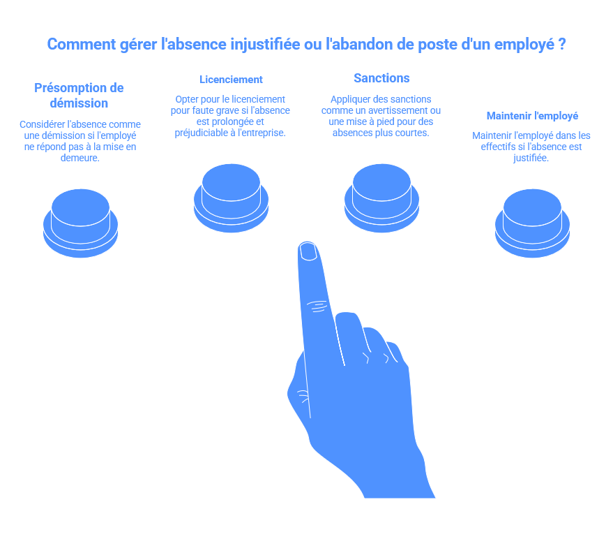 Si le salarié ne répond pas ou ne reprend pas son travail dans un délai raisonnable, et que cette absence compromet le bon fonctionnement de l’entreprise, l'employeur peut sanctionner le salarié ou entamer une procédure de licenciement.