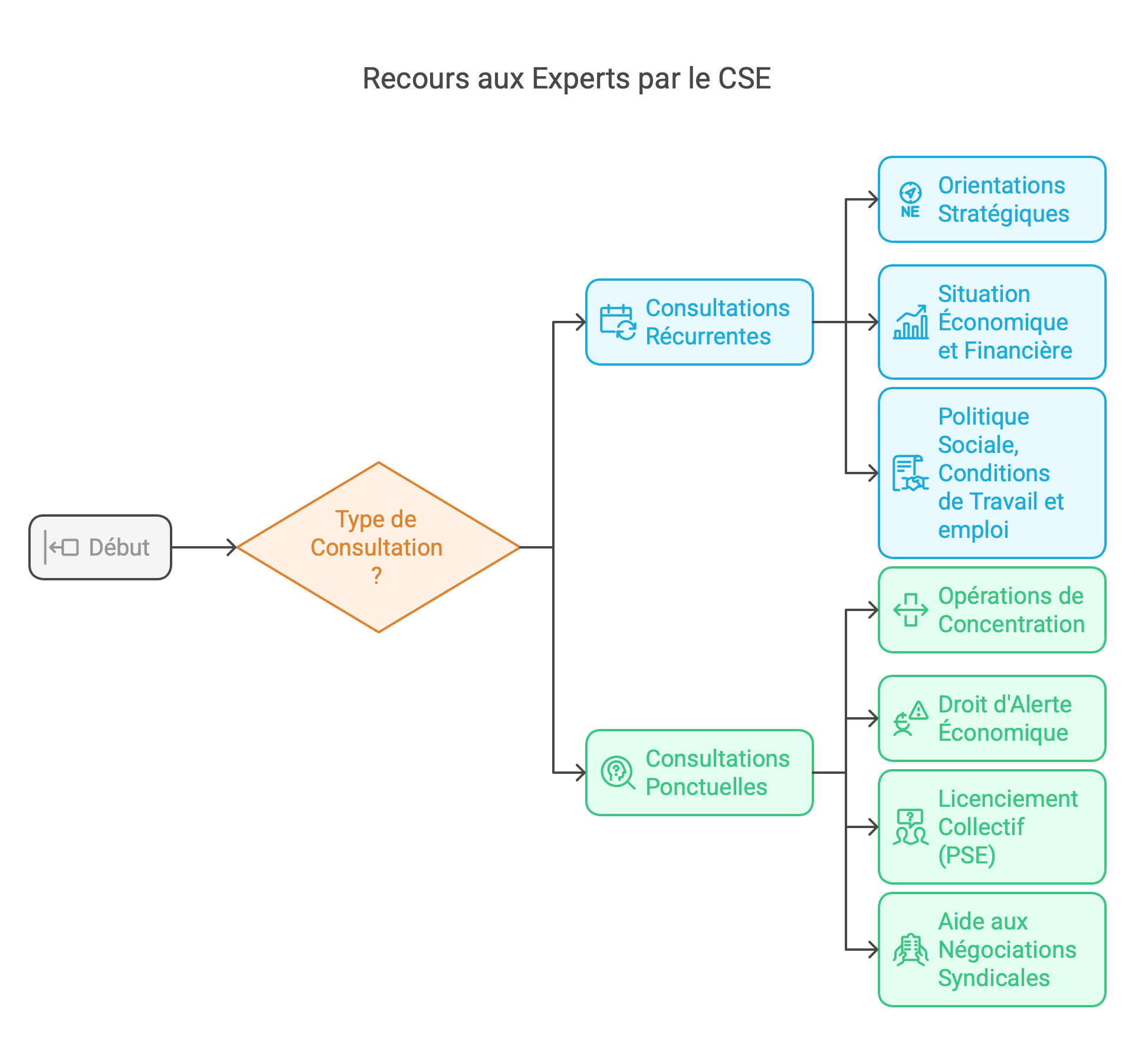 • Le CSE central et d’établissement : Les consultations récurrentes et ponctuelles se répartissent entre le niveau central et les établissements, selon la nature des projets et leur impact.