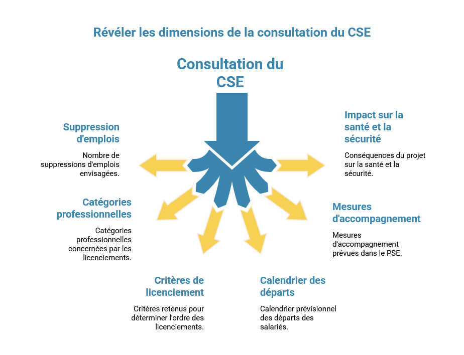 | CSE | Il est consulté sur 2 volets distincts mais étroitement liés (article L.1233-30 du Code du travail) :